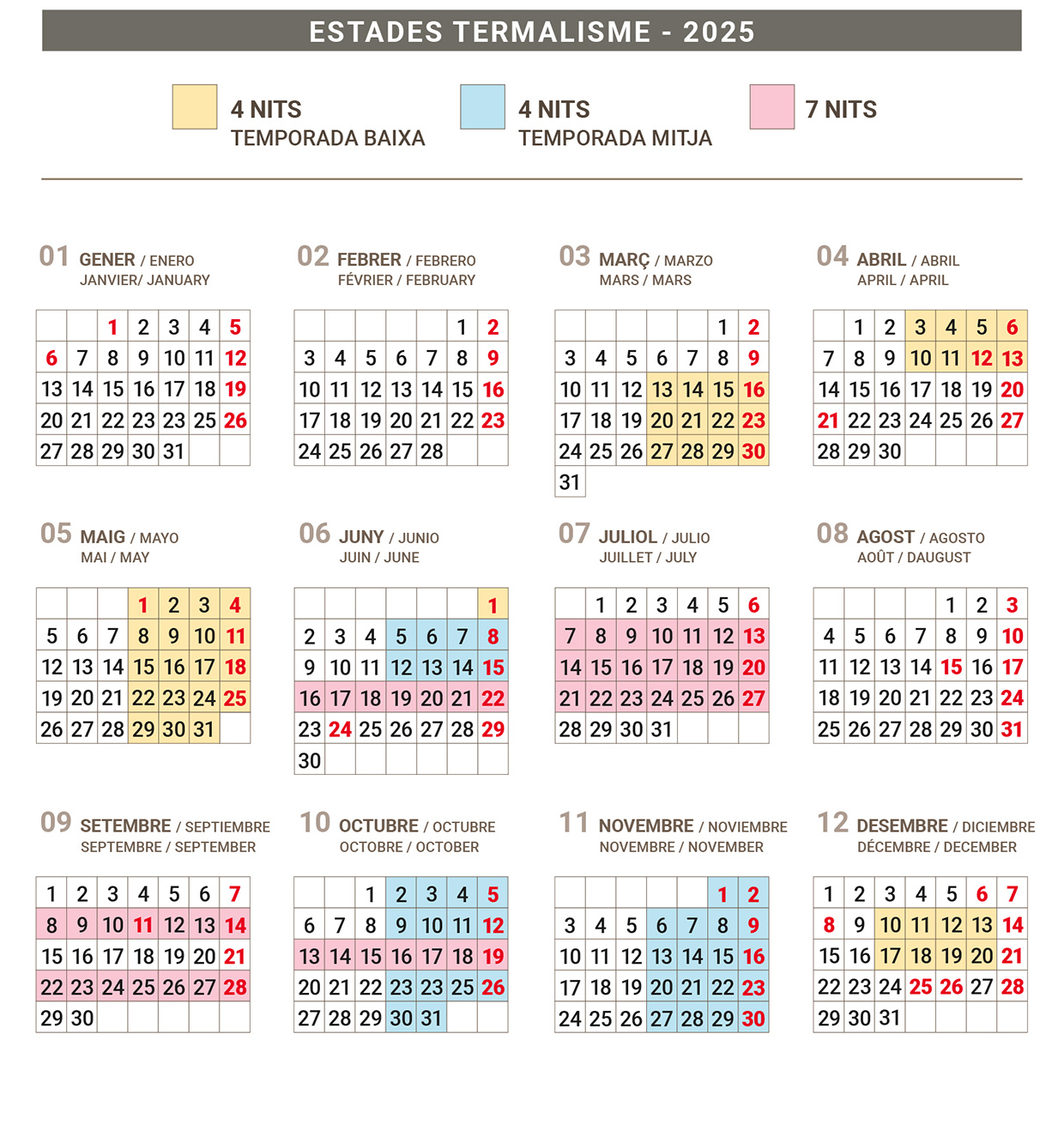 480€/persona hab. indiv/carretera (només llit 1,35)Iva inclòs –